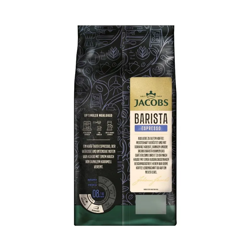 Jacobs Barista Espresso Coffee Beans is a specially crafted dark roast whole bean blend that delivers full-bodied coffee with a deep and rich flavor. Designed for coffee lovers who appreciate a well-balanced espresso, this blend combines carefully selected premium coffee beans to achieve a bold taste that is smooth yet strong.